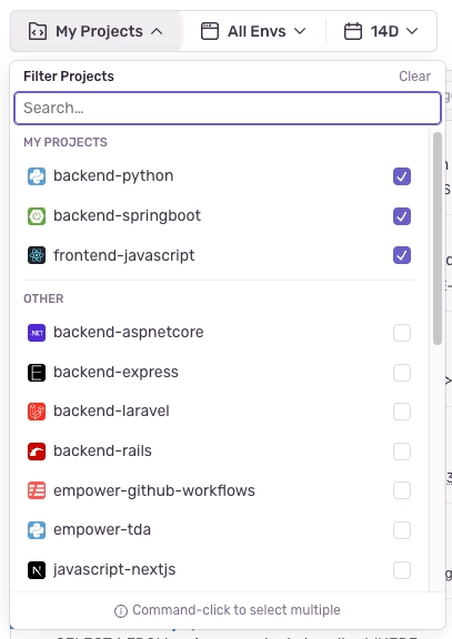 Page filters allow you to narrow down the results shown on a page by selecting specific projects, environments, and date ranges. After you've set your filters, they'll persist as you navigate across pages in Sentry.